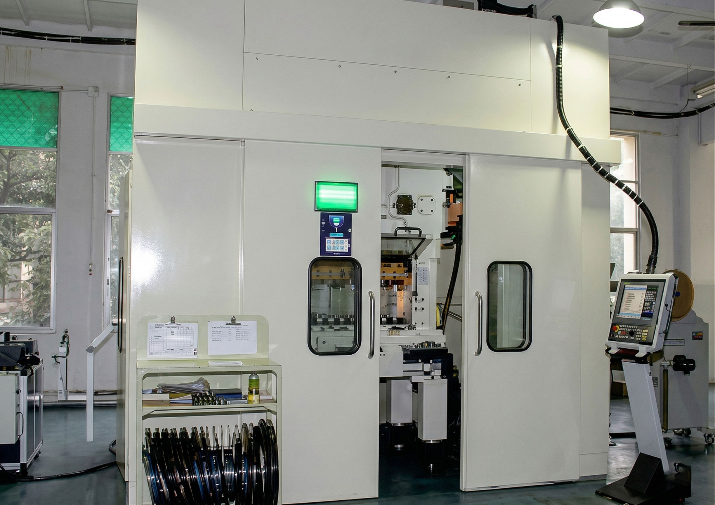 High-speed precision stamping presses for complex metal contact components.